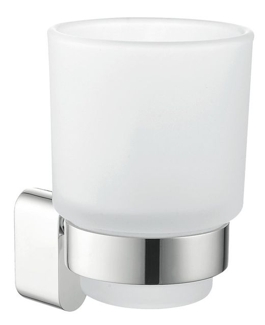 Bekerhouder voor tandenborstel of tandpasta die de chromen afwerking combineert met gehard glas
