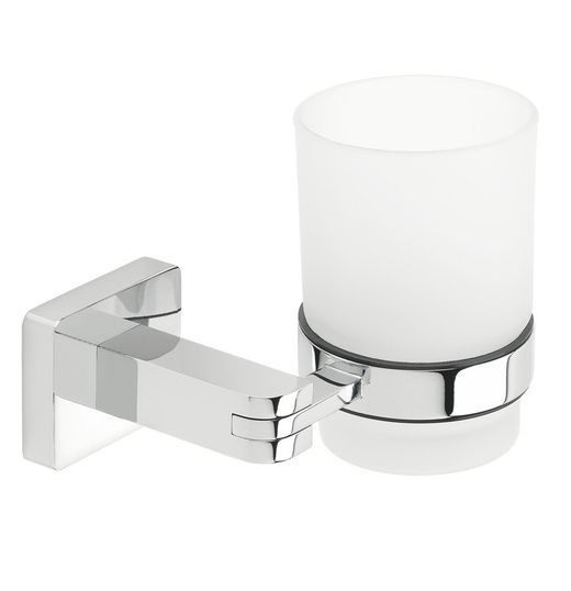 Bekerhouder voor tandenborstel of tandpasta die de chromen afwerking combineert met gehard glas